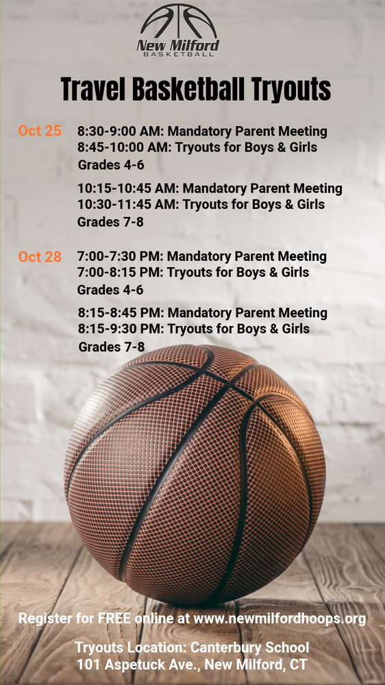 New Milford Youth Basketball Tryouts! Register Here for FREE!